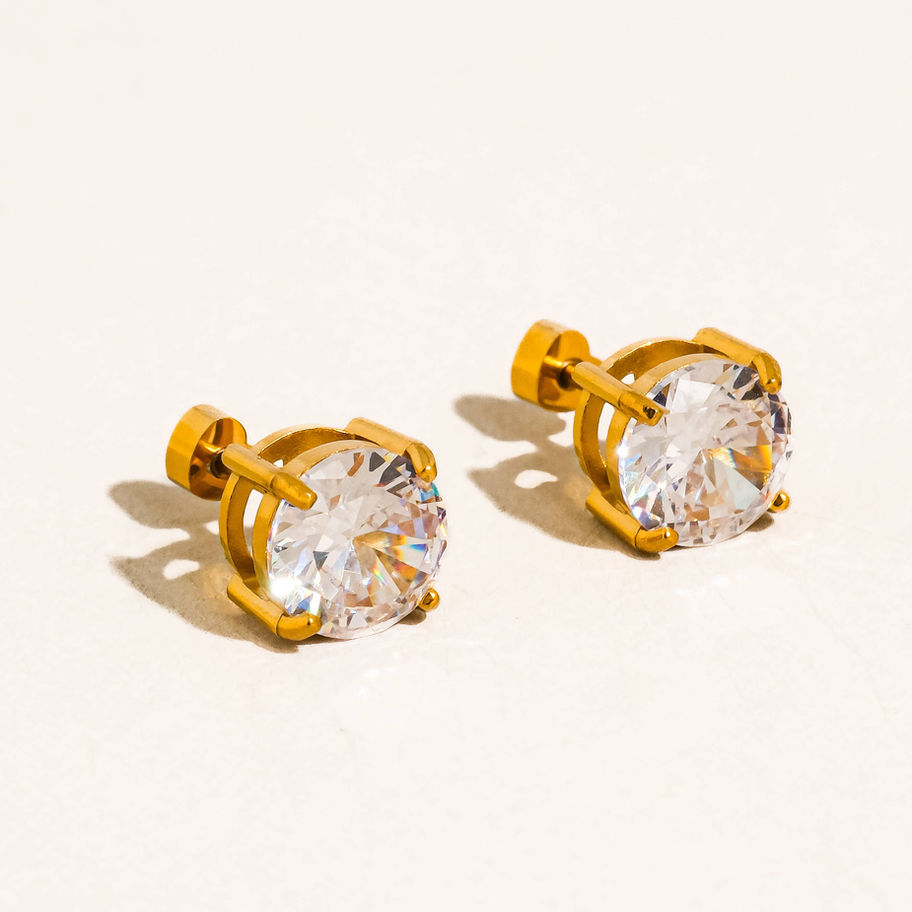 Avenn 18K Gold Non-Tarnish Round CZ Flat Back Earrings