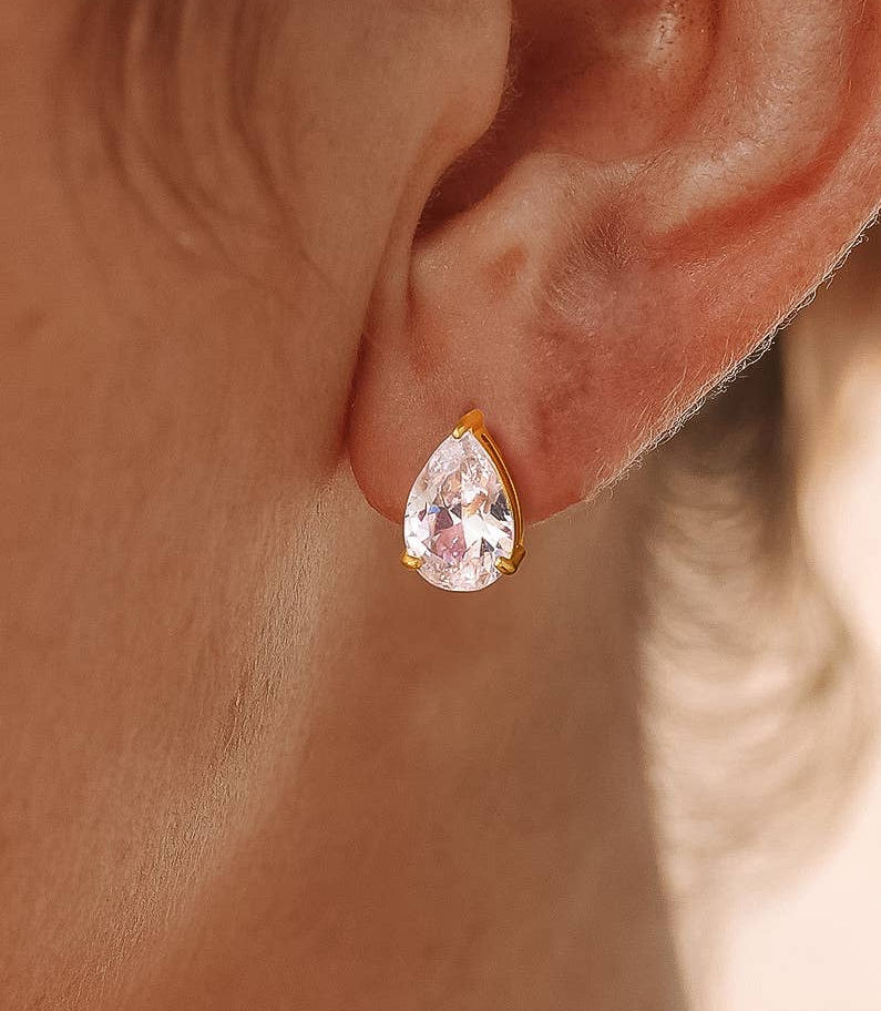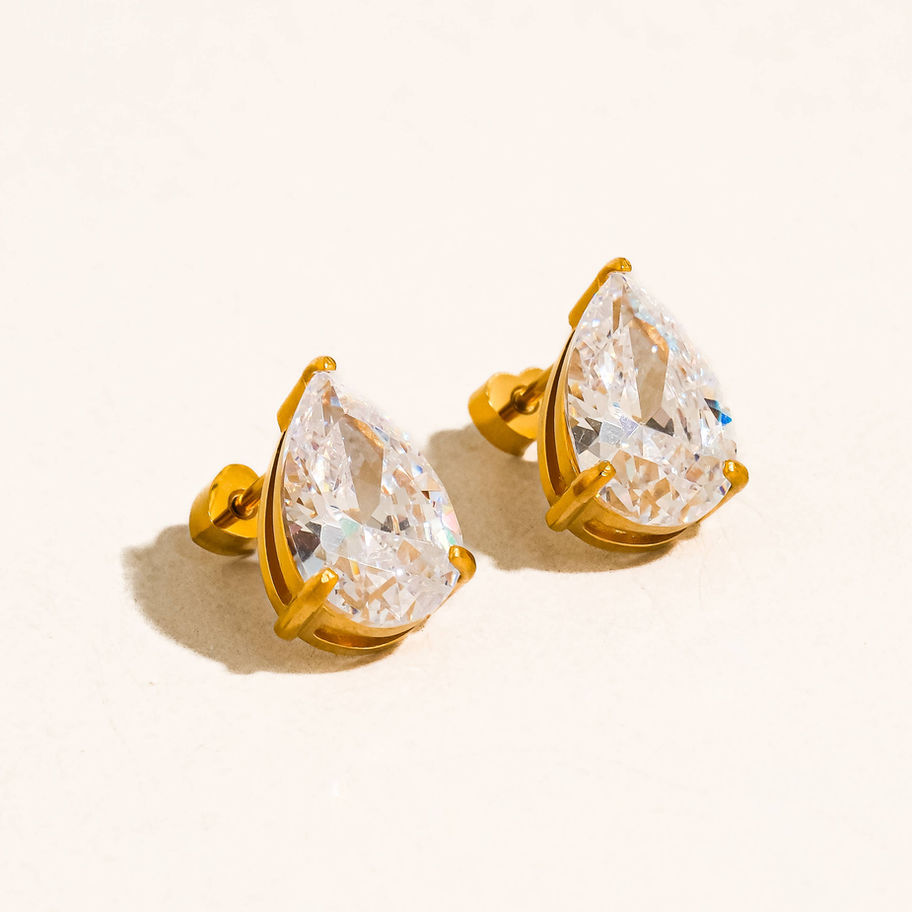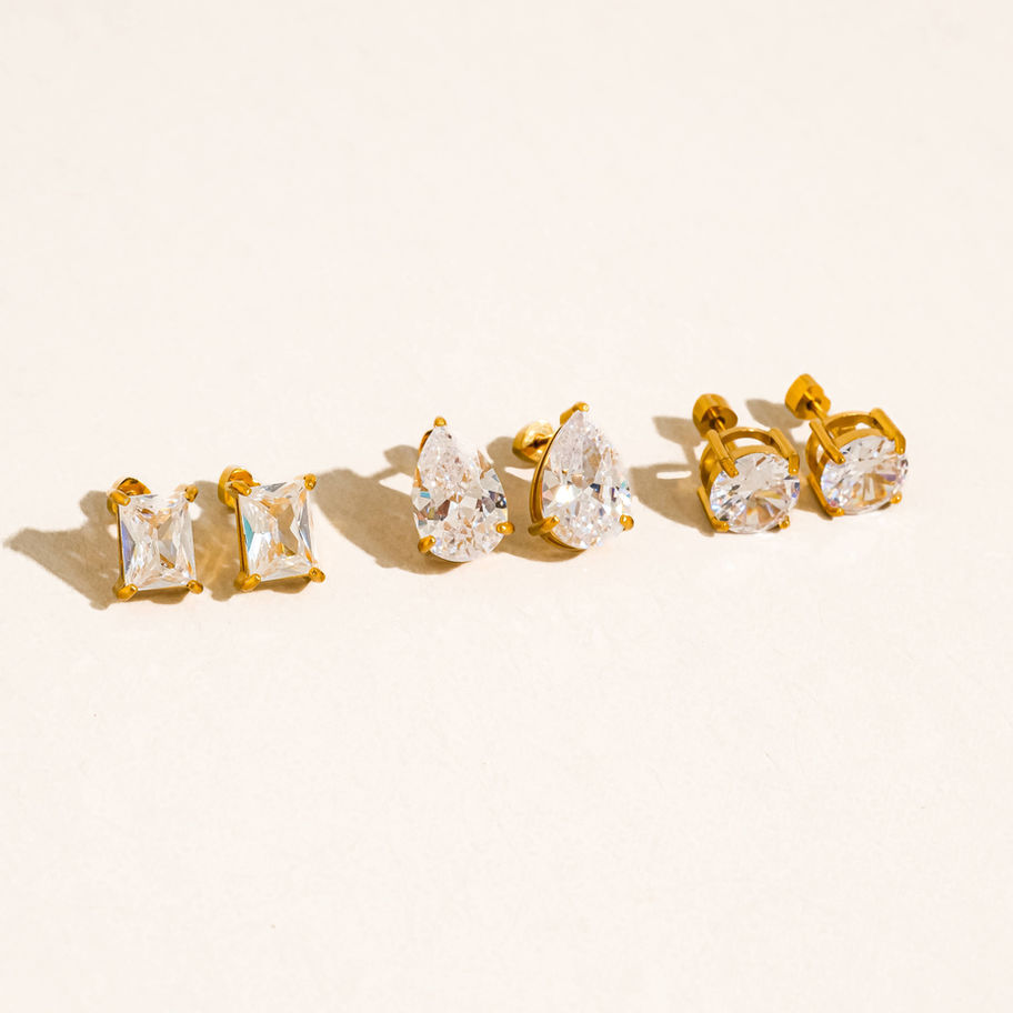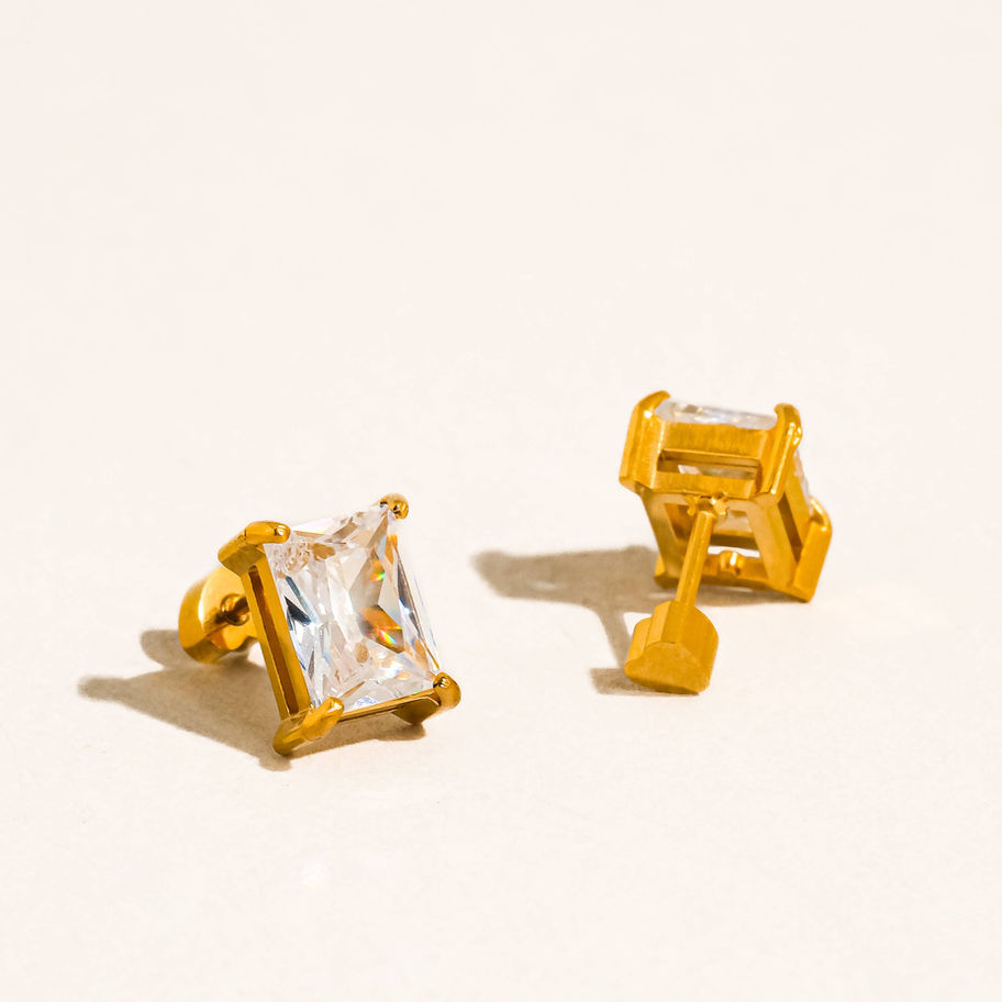 18K Gold Non-Tarnish Round CZ Stud Flat Back Earrings 18K Gold Plating Stainless Steel Cubic Zirconia Avenn-Gold-C Round Stud Measurement (L x W inch): 0.31 x 0.31 Avenn-Gold-R Rectangle Stud Measurement (L x W inch): 0.37 x 0.23 Avenn-Gold-T Teardrop Measurement (L x W inch): 0.49 x 0.32 - Lead-free, Nickel-safe - Hypoallergenic - Water Resistant