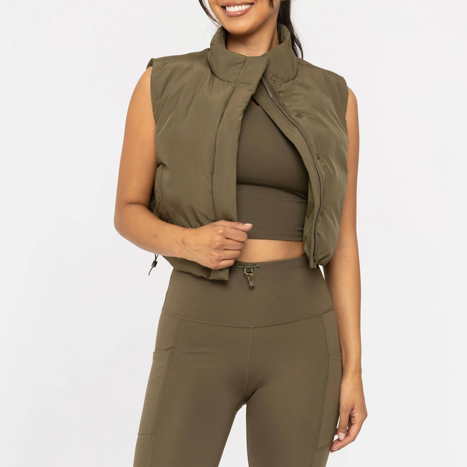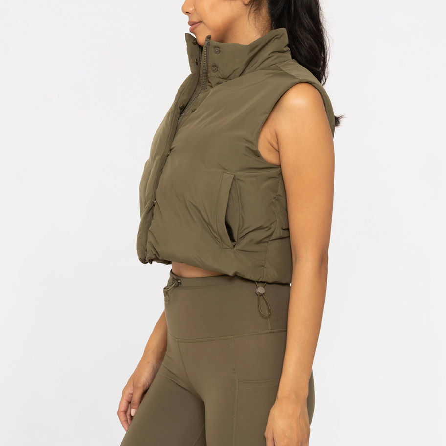 Cropped High Neck Puffer Vest