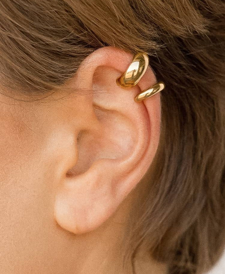 18K Gold Non-Tarnish Small Ear Cuff 18K Gold Plating Stainless Steel Measurement (L x W inch) #1: 0.24inx0.37in #2: 0.32inx0.19in - Lead-free, Nickel-safe - Hypoallergenic - Water Resistant
