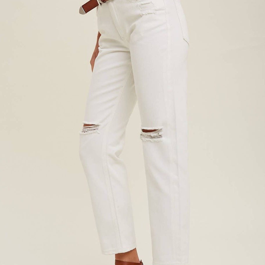 LIGHT-WASH LOOSE FIT DENIM WITH DISTRESSED - BUTTON AND ZIP CLOSURE - BELT LOOPS AND 5-DENIM POCKETS 100% COTTON *No returns or exchanges* * Due to lighting and differences in monitors, actual colors may vary slightly from what appears online.