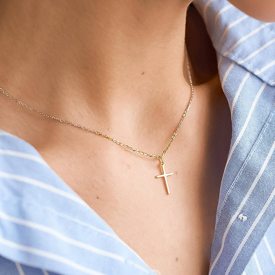 18K Gold Non-Tarnish Small Cross Necklace 18K Gold Plating Stainless Steel Pendant Size (inch): 0.4 x 0.6 Chain Length (inch): 17.7 Extension Length (inch): 2 - Lead-free, Nickel-safe - Hypoallergenic - Water Resistant