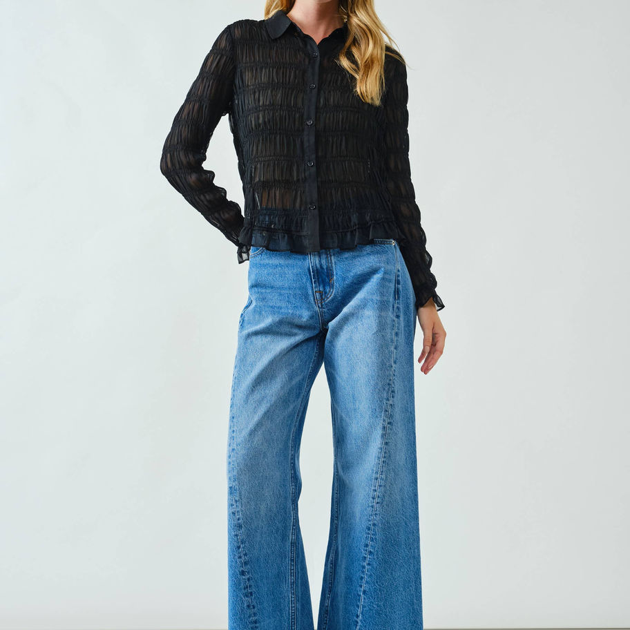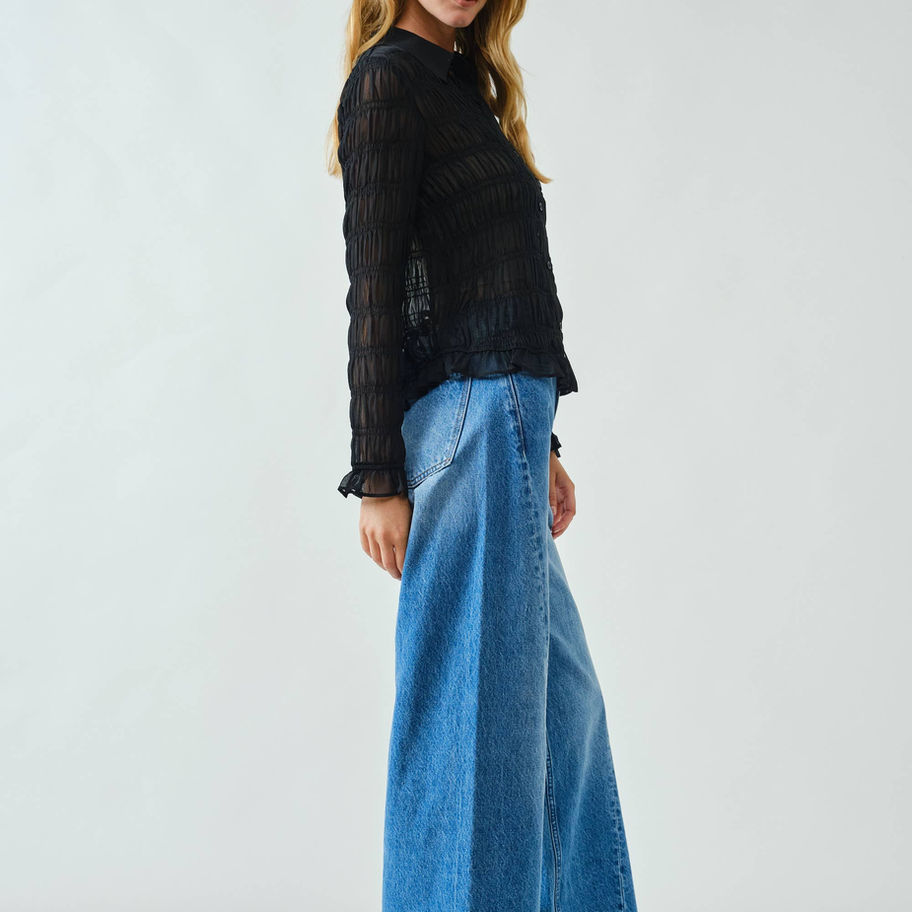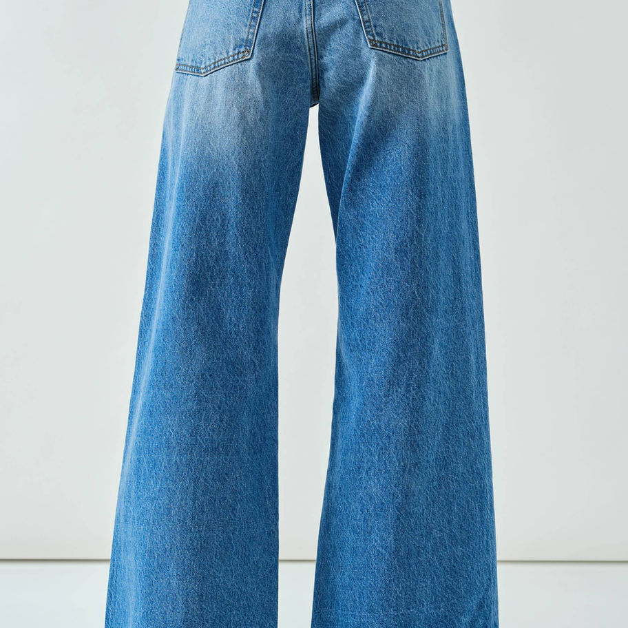 These wide-leg jeans feature a Western-inspired twist with a relaxed yet flattering fit. Perfect for pairing with boots or sneakers, these pants add a laid-back, trend-forward vibe to any look.